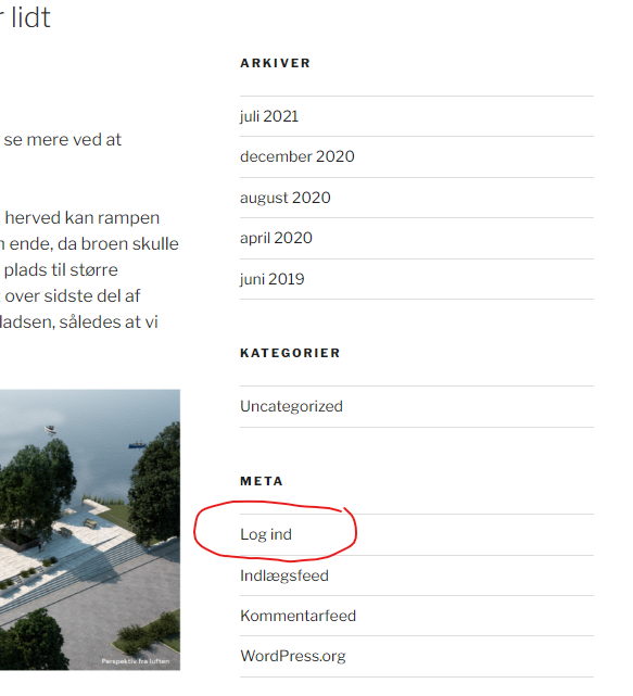 Fra forsiden, scroller du længere ned på siden til du møder menuen i højre side, hvor efter du klikker på menupunktet “Log ind”.